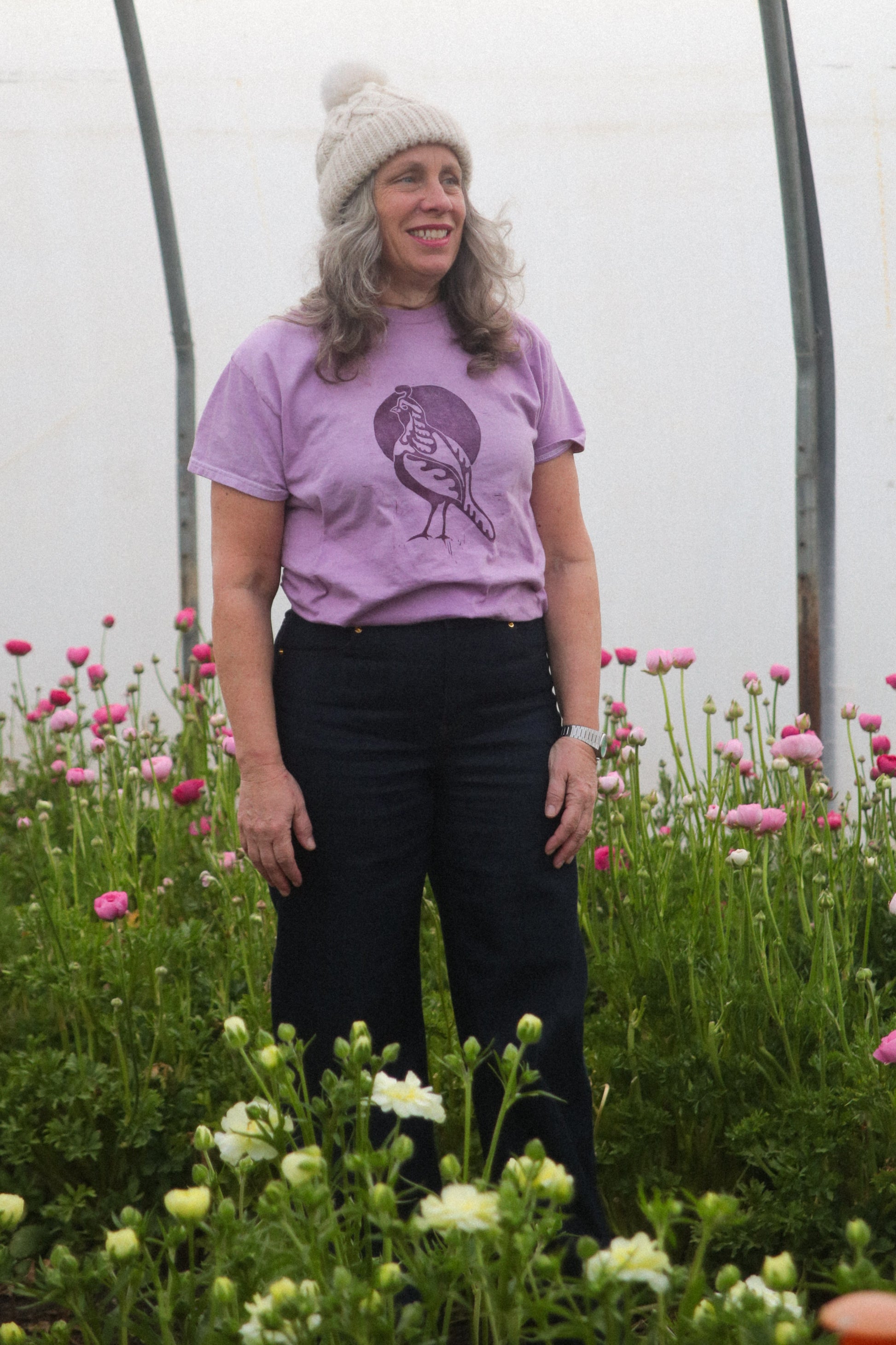 QUAIL PRINT - All t-shirts are printed with black ink on off-white t-shirts. If you’d like to customize ink or shirt color, please email me or use the order form on my instagram, which will start a custom order with me. Additionally, I will periodically have naturally dyed shirts available. These will be posted on the website/instagram separately. All designs are created, carved, and hand printed by me. Because each one is done individually, there may be discrepancies (ink marks etc), but they are all hand made with love. I strive for artistry, not perfection!